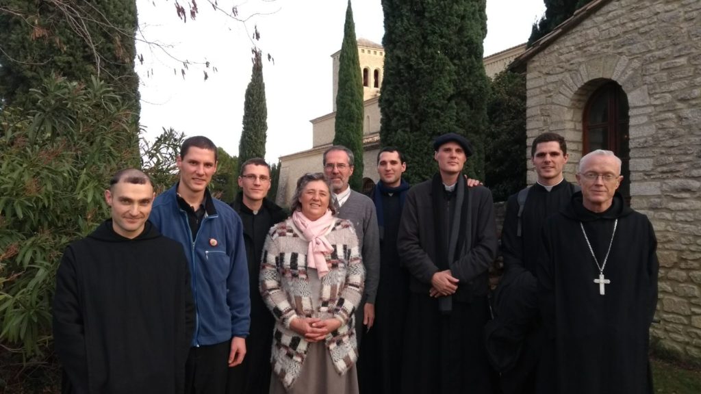 Esta comunidad fue fundada en 1970 por Dom Gérard, quien en medio del vendaval postconciliar, pidió hacer “la experiencia de la Tradición: oración, silencio, trabajo manual, oficio en latín y liturgia tradicional. Y tan mal no le fue, pues enseguida golpearon a su puerta varios candidatos pidiendo llevar el mismo tipo de vida… Hasta un grupo de hermanas benedictinas se sumó a la experiencia tradicional. Ocho años después la naciente congregación consiguió un terreno de 30 hectáreas en Le Barroux (muy cerquita de Aviñón, Francia) y comenzó a construir su propio monasterio con el lema Pax in lumine, para hacer descender un poco de la paz del cielo en los corazones de los hombres. He aquí su misión.