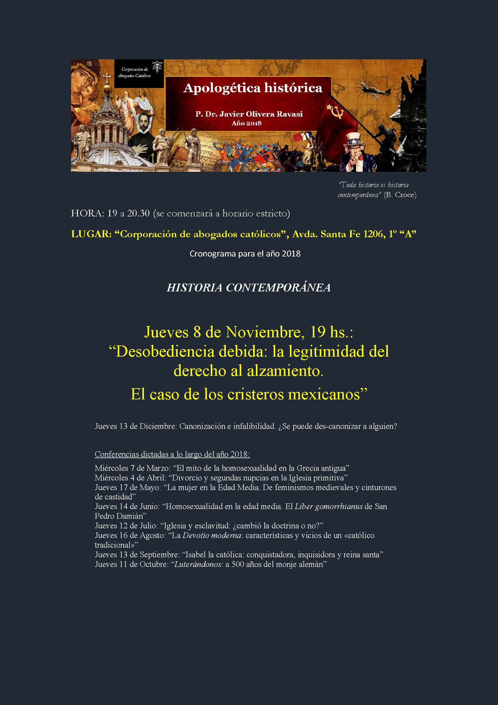 Invitación al Curso de “Apologética histórica” en la Corporación de Abogados Católicos de la Ciudad de Buenos Aires,a cargo del P. Javier Olivera Ravasi.