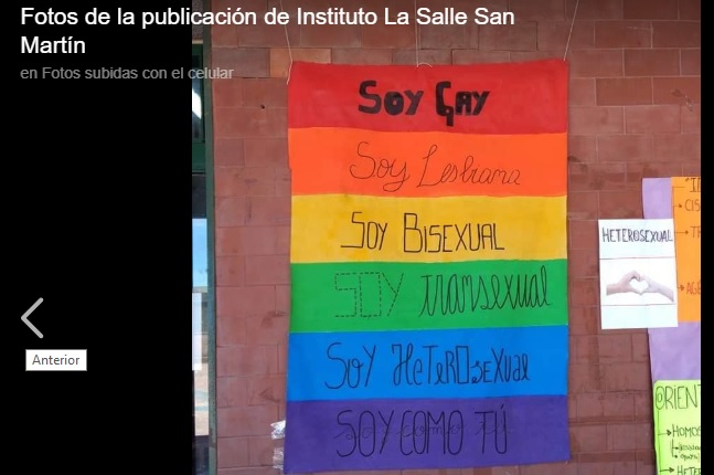 Nos mandan estas imágenes del hasta ahora -para nosotros- desconocido Colegio La Salle Jobson de Santa Fé y del La Salle de San Martín: colegios “inclusivos”, “tolerantes”, “concietizadores” y mil progresadas más… Y más rabia nos da por ser nosotros egresados de otro colegio La Salle de Buenos Aires, que si bien era flojísimo en doctrina católica, al menos, era un colegio de varones heterosexuales, futbolistas y pecadores como todos los hijos de Adán…